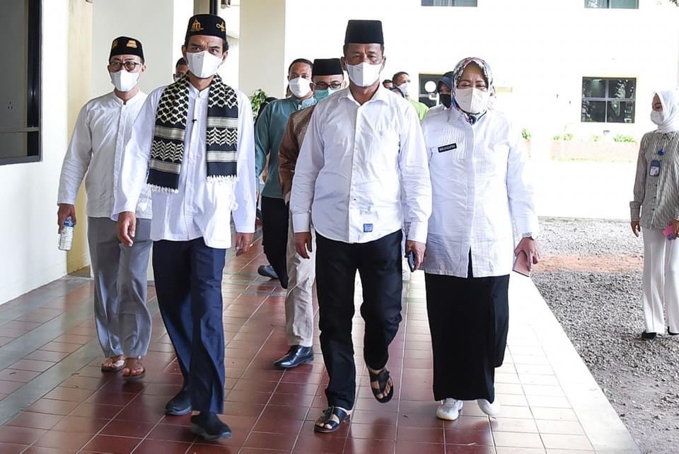 WAKIL GUBERNUR Kepulauan Riau Hj Marlin Agustina yang juga Ketua PIKORI Badan Pengusahaan (BP) Batam, menyambut kehadiran Ustaz Abdul Somad untuk mengisi tabligh akbar di Balairungsari BP Batam, Kota Batam, Jumat (24/12/2021).