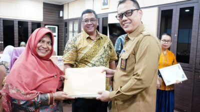 ENGKU PUTRI, KataBatam- Wali Kota Batam H Muhammad Rudi (HMR), diwakili Sekretaris Daerah Kota Batam H Jefridin, melepas dan menyerahkan SK 22 pegawai negeri sipil Pemerintah Kota (Pemko) Batam, yang memasuki batas usia pensiun (BUP) terhitung mulai tanggal (TMT) 1 Januari 2025.