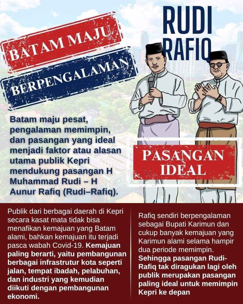Sehingga pasangan Rudi-Rafiq tak diragukan lagi oleh publik merupakan pasangan paling ideal untuk memimpin Kepri ke depan. (ski)