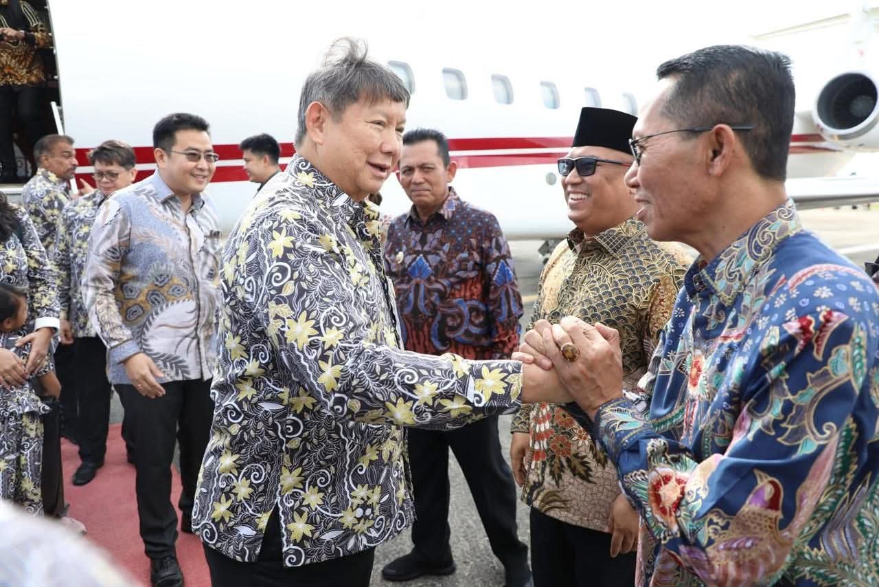 NONGSA, KataBatam- Wali Kota Batam H Amsakar Achmad, tampak akrab dengan Hashim S. Djojohadikusumo, saat menyambut adik Presiden Prabowo tersebut, di VIP Bandara Hang Nadim, Kamis (10/7/2025).
