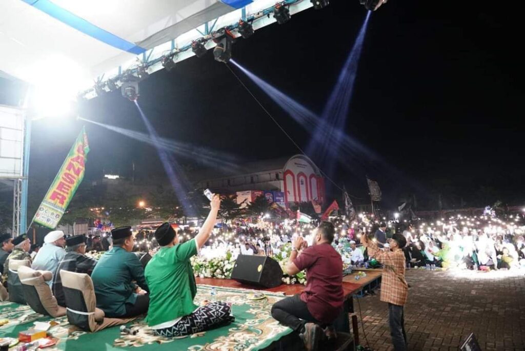 Situasi bertambah syahdu saat para hadirin, juga Jefridin, menyalakan flashlight ponsel masing-masing lalu mengangkatnya sambil terus berselawat. Sehingga tampak bagai lautan cahaya.
