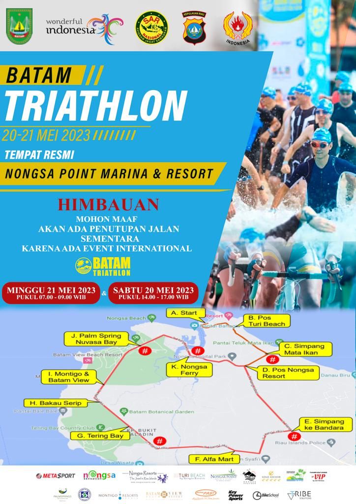 Batam, Nongsa Resorts akan menggelar iven bertaraf internasional. Iven perpaduan 3 olah raga ini meliputi renang, sepeda dan berlari ini akan di gelar pada Sabtu dan Minggu 20 dan 21 Mei 2023 mendatang.