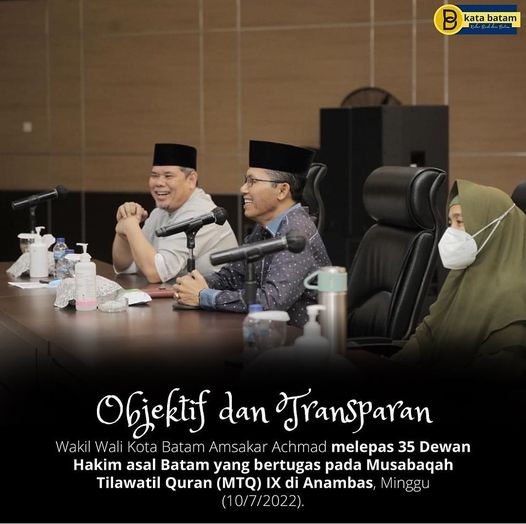 ENGKUPUTRI, KataBatam– Sebanyak 35 Dewan Hakim asal Batam yang diamanahi untuk bertugas pada Musabaqah Tilawatil Quran (MTQ) IX Kepulauan Riau di Kabupaten Kepulauan Anambas, diberangkatkan.