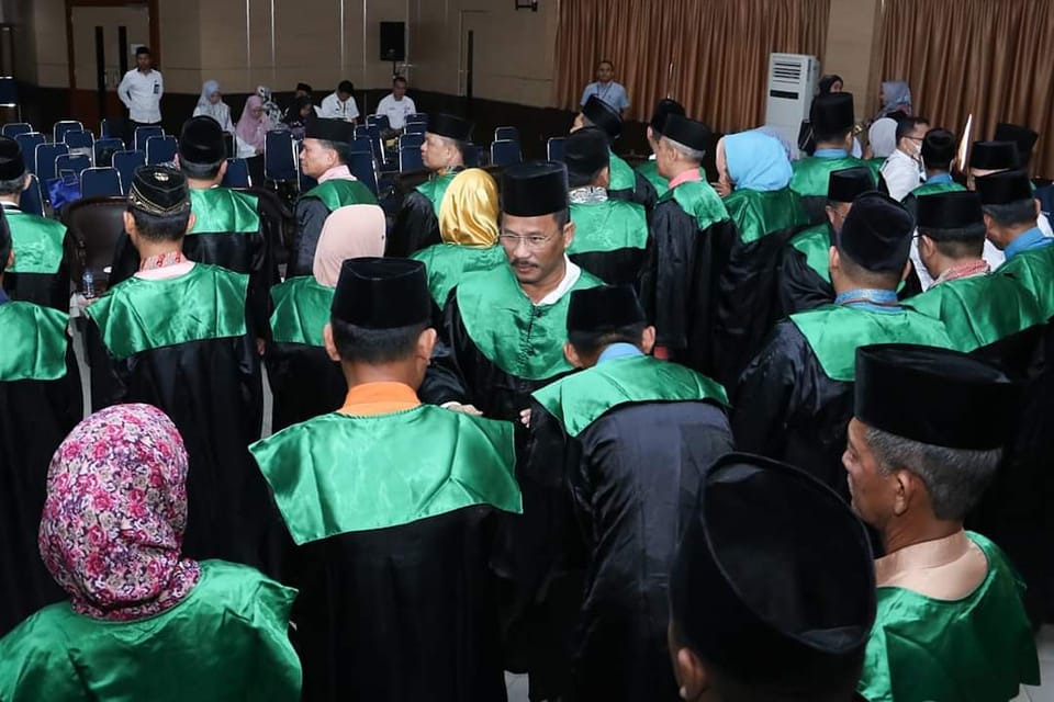 ENGKUPUTRI, KataBatam- Wali Kota Batam H Muhammad Rudi (HMR) melantik 100 Dewan Hakim STQH IX Tingkat Kota Batam di aula Engku Hamidah, Lantai IV, Kantor Wali Kota, Batamcenter, Rabu (8/3/2023).