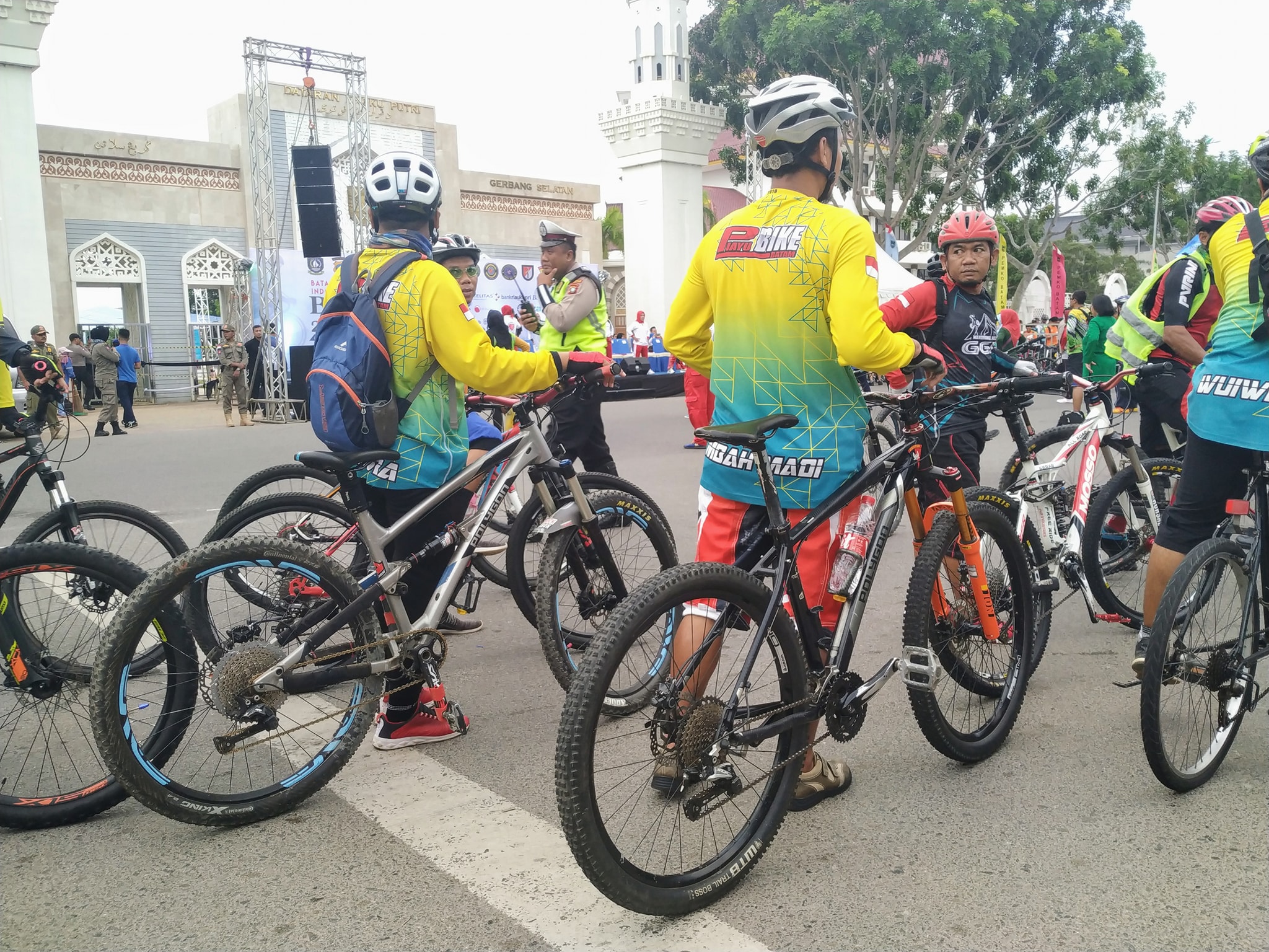 Saat ini di lokasi, gerbang Selatan Dataran Engku Putri sudah banyak peserta yang datang. Mulai unsur TNI/Polri dan masyarakat seluruh lapisan, dan tentu saja klub sepeda, sudah berkumpul. Sebagian ada yang ikut pemanasan dengan senam bersama.