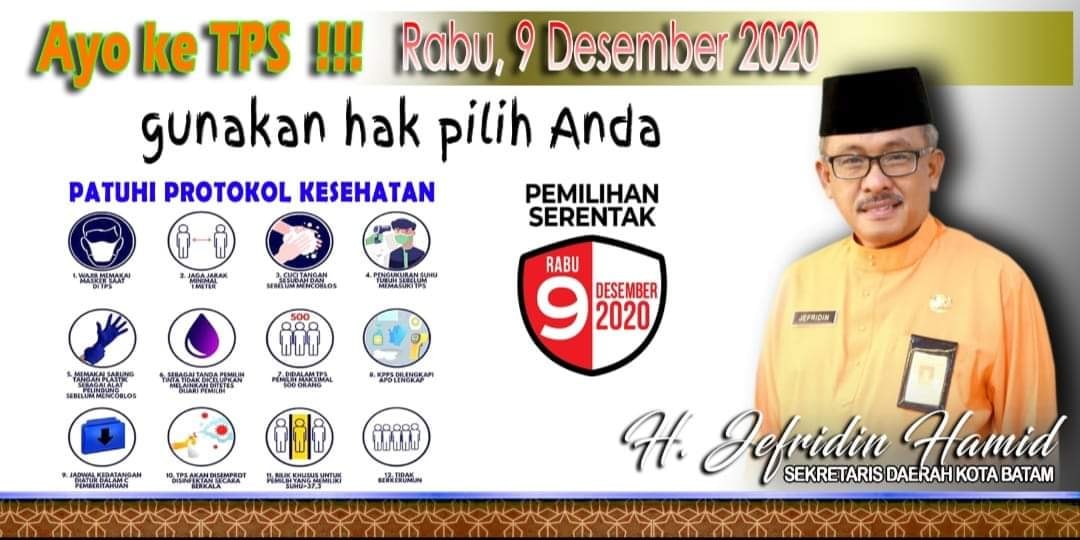 Demikian dua bait pantun dari Sekretariat Daerah Kota Batam H Jefridin, mengajak masyarakat berpartisipasi menyukseskan Pilkada Serentak 2020 yang jatuh esok, Rabu (9/12/2020).