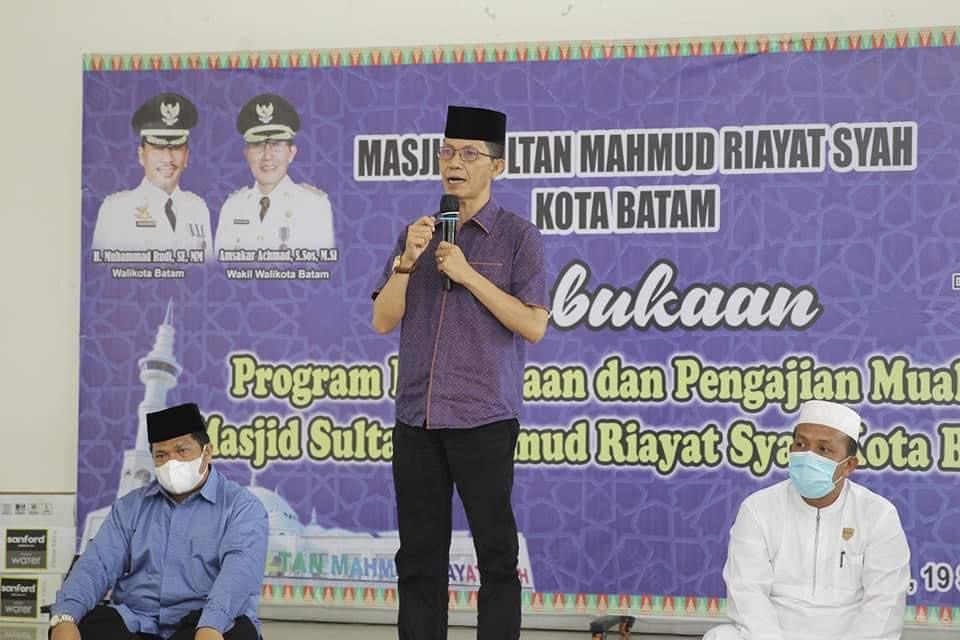WAKIL WALI KOTA Batam H Amsakar Achmad, membuka Program pembinaan dan pengajian mualaf Masjid Mahmud Riayat Syah, Kota Batam, Minggu (19/9/2021).