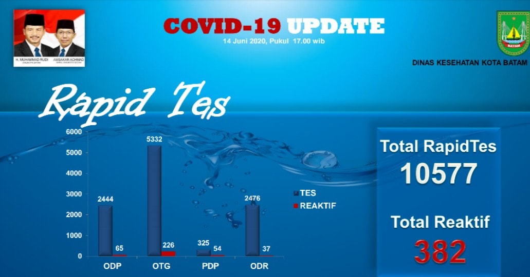 SAMPAI Minggu (14/6/2020) pukul 21.00, perkembangan penanganan Covid-19 di Kota Batam mencatat penambahan 11 orang positif dan 11 orang sembuh dari virus Corona ini.