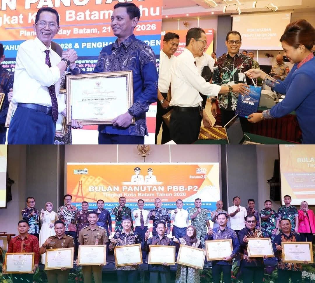 JODOH, KataBatam- Pemerintah Kota (Pemko)Batam, memberi penghargaan kepada kelurahan hingga perusahaan patuh pajak, dalam kegiatan Bulan Panutan Pajak Bumi dan Bangunan Perdesaan dan Perkotaan (PBB-P2) tingkat Kota Batam Tahun 2026 di Hotel Planet Holiday Batam, Jodoh, Selasa (21/4/2026).