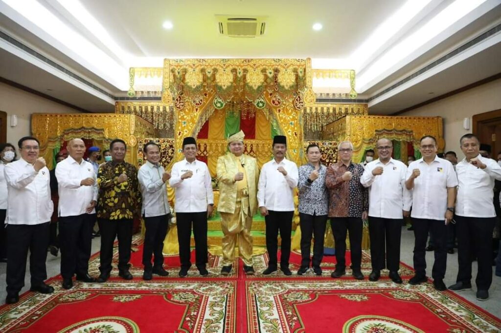 Kehadiran Menko Perekonomian RI disambut dengan rangkaian prosesi adat Melayu, dimulai dengan tepukan kompang dan pencak silat.