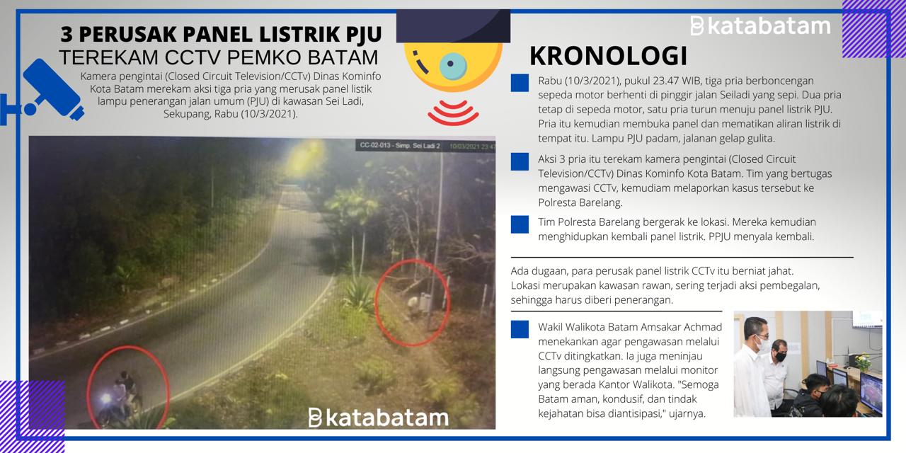 “Semalam kita mendeteksi ada tiga orang yang dengan sengaja merusak panel listrik lampu penerangan jalan umum (PJU)” ujar Azril, Kamis (11/3/2021) pagi.