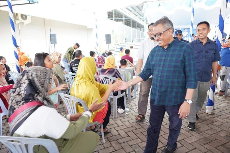TURUN LANGSUNG: Sekda Jefridin, menyapa masyarakat di sela Roadshow PBB-P2 (Pajak Bumi dan Bangunan Perdesaan dan Perkotaan) di Kecamatan Nongsa, Sabtu (6/5/2023).