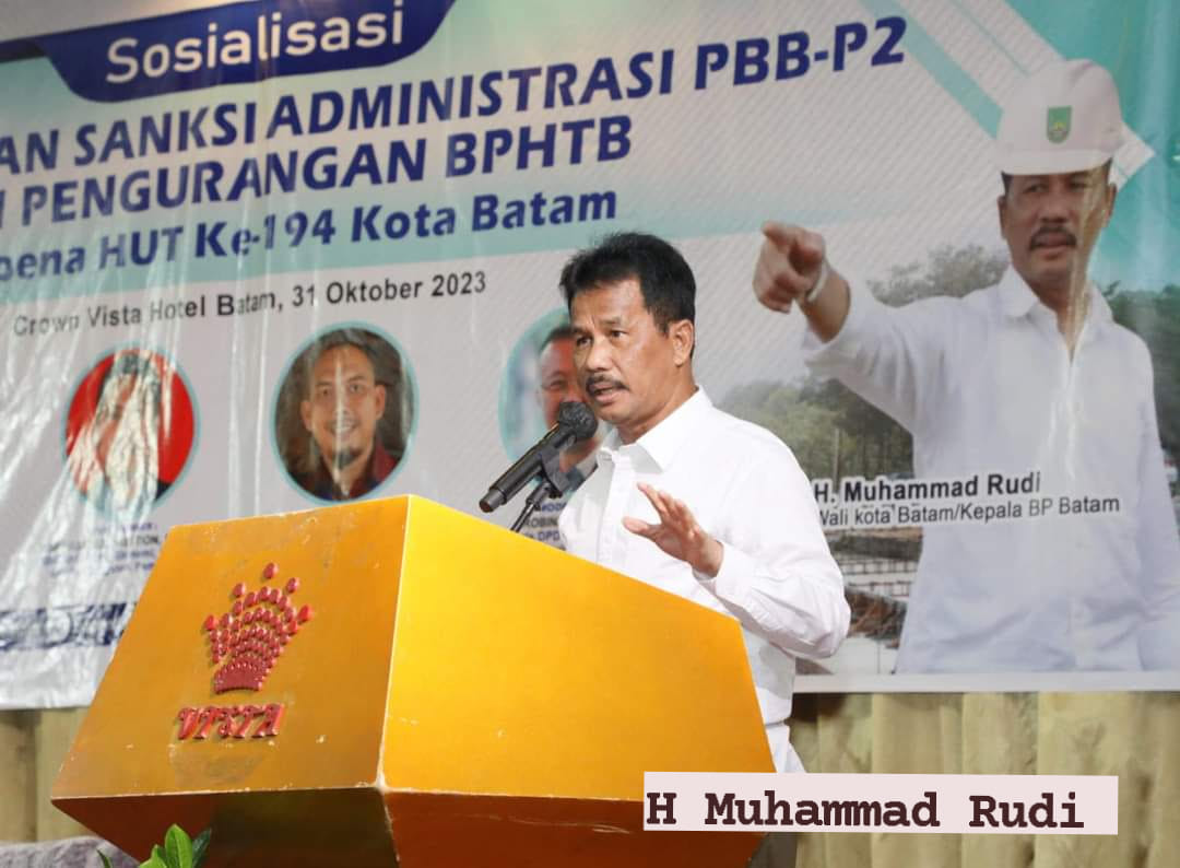 Hal itu disampaikannya pada acara sosialisasi sanksi administrasi Pajak Bumi dan Bangunan Perdesaan dan Perkotaan (PBB-P2) dan Pengurangan Bea Perolehan Hak atas Tanah dan Bangunan (BPHTB), Vista Hotel, Batamkota, Selasa (31/10/2023).