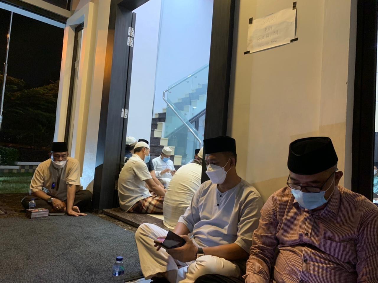 Jamaah mendoakan almarhum Sari bin Rahim, 82 tahun, mertua Amsakar yang berpulang di hari baik, Jumat (15/10/2021).