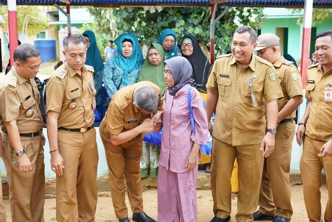 Sikap tak biasa ditunjukkan Sekretaris Daerah Kota Batam H Jefridin, di sela membuka sosialisasi Pilah Sampah dari Rumah, di Kelurahan Setokok, Kecamatan Bulang, Senin (4/12/2023). Suami Hj Hariyanti Jefridin itu mencium tangan seorang nenek bernama Janiah.