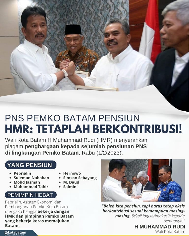 HMR mengaku bangga atas peran pensiunan selama bertugas. Tak lupa ia mengkhaturkan terimakasih atas andil selama bertugas, khususnya bagi pembangunan Batam.