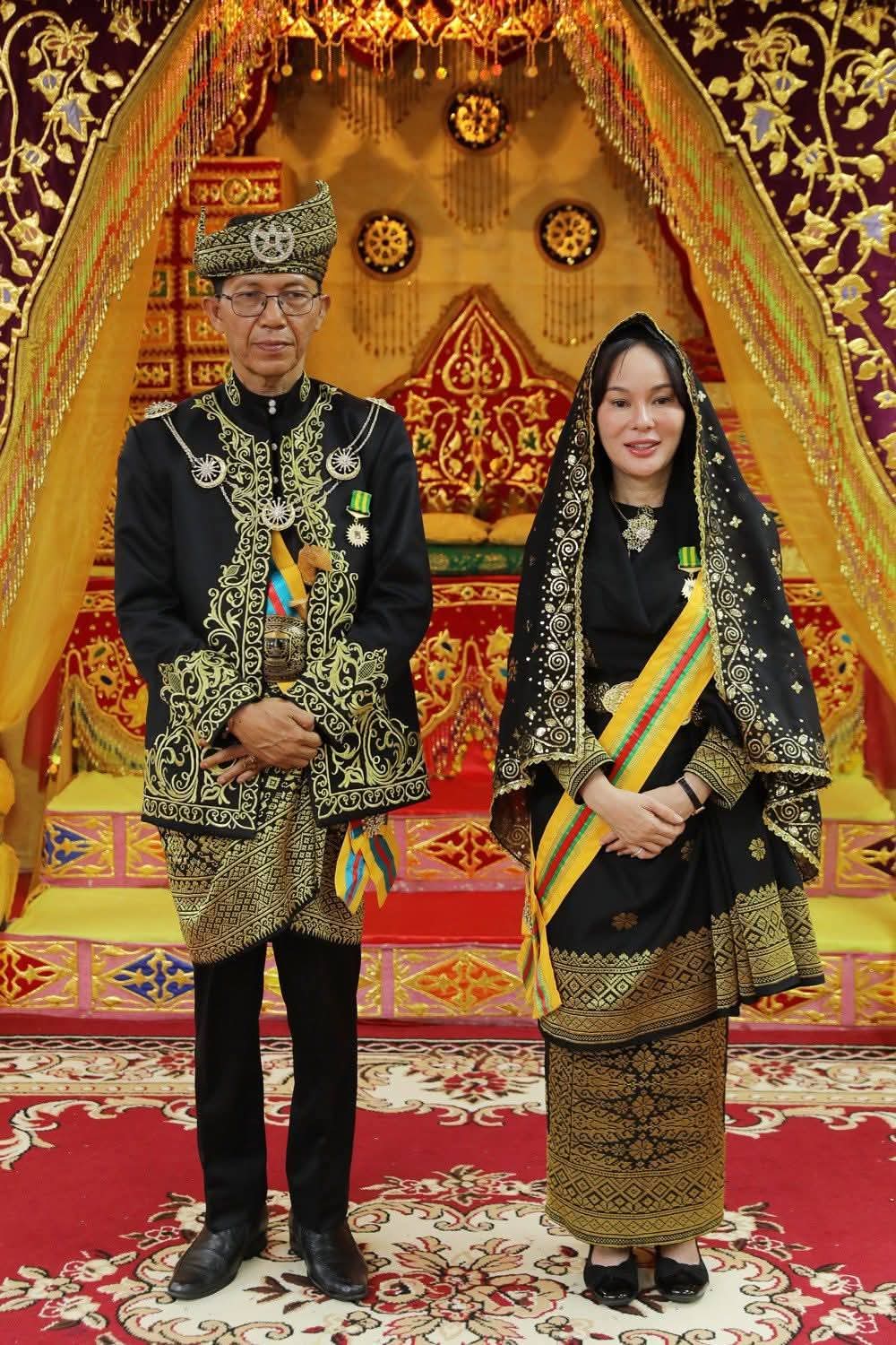 Di antara gemuruh tepuk tangan dan iringan musik tradisional, Amsakar Achmad resmi menyandang gelar Datuk Setia Amanah, sementara Li Claudia Chandra menerima gelar Datuk Setia Bijaksana—dua gelar yang mencerminkan amanah dan kebijaksanaan yang melekat dalam kepemimpinan mereka.