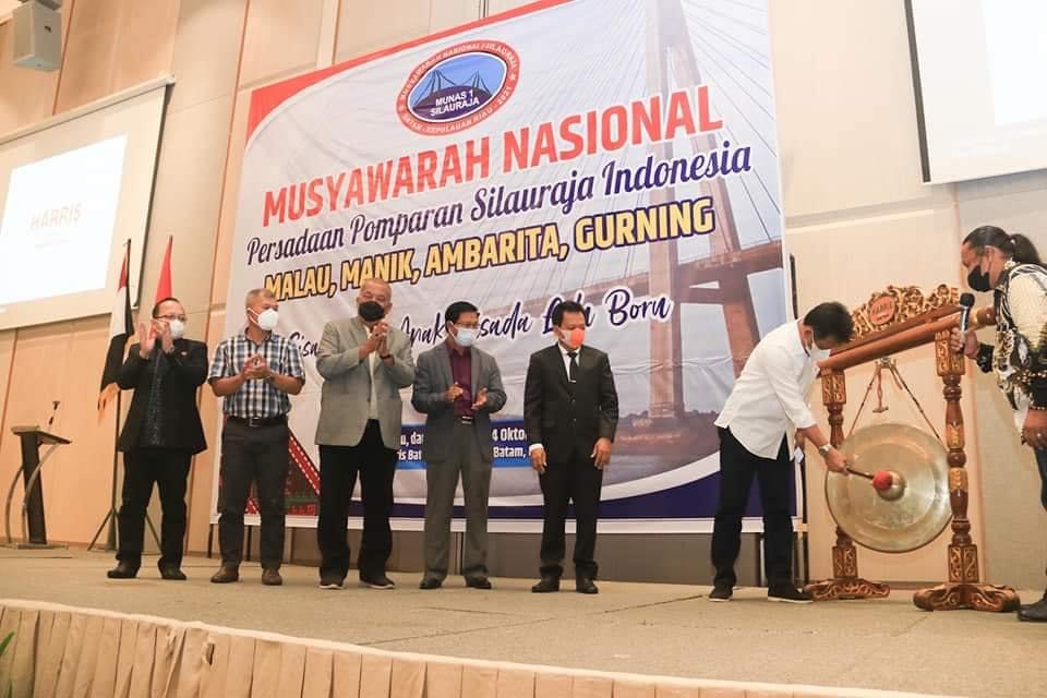 WALI KOTA BATAM H Muhammad Rudi (HMR), membuka Munas Persadaan Pomparan Silauraha Indonesia (Malau, Manik, Ambarita, Gurning), di Hotel Haris Batam Center, Jumat (22/10/2021).