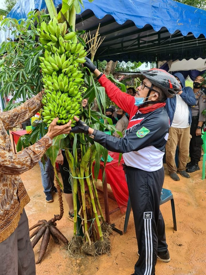 Dalam kegiatan ini, Jefridin didaulat oleh Ketua Kelompok Tani Sumber Rezeki Ruhyadi, dan Ketua Kelompok Tani Tunas Mekar Miswanto untuk memanen pisang dan menanam bibit mangga.”Bila dikemas dengan baik, aktivitas ini tentu sangat menarik bagi wisatawan,” tuturnya. ***