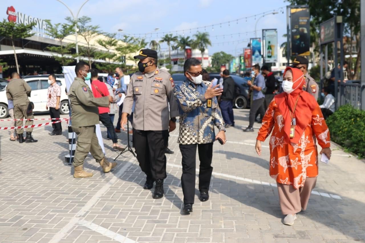 SEKRETARIS DAERAH (Sekda) Kota Batam  H Jefridin Hamid , meninjau pelaksanaan vaksinasi, Kamis (10/6/2021). Pertama di Dataran Engku Putri, lanjut ke Kecamatan Lubukbaja, dan di Kawasan Industri Batamindo.