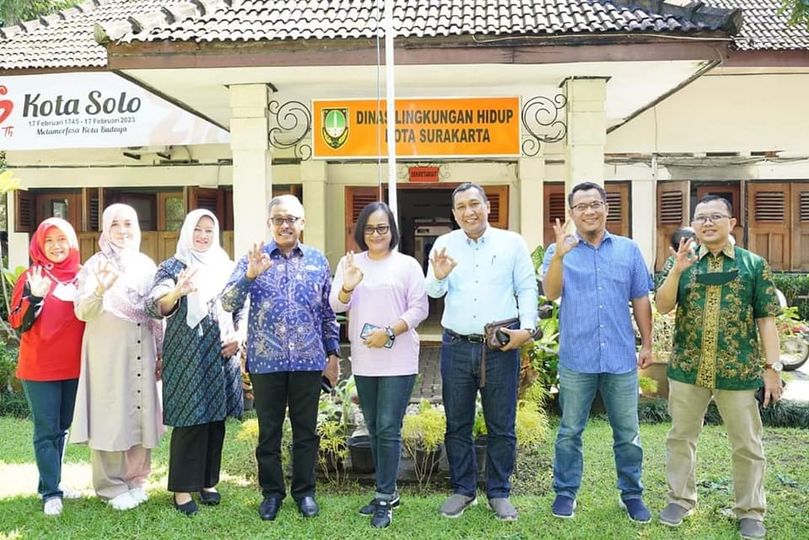 SIAP BERINOVASI: Rombongan Pemko Batam, dipimpin Sekda Jefridin, berfoto di Kantor Dinas Lingkungan Hidup (DLH) Surakarta, Jumat (3/3/2023).