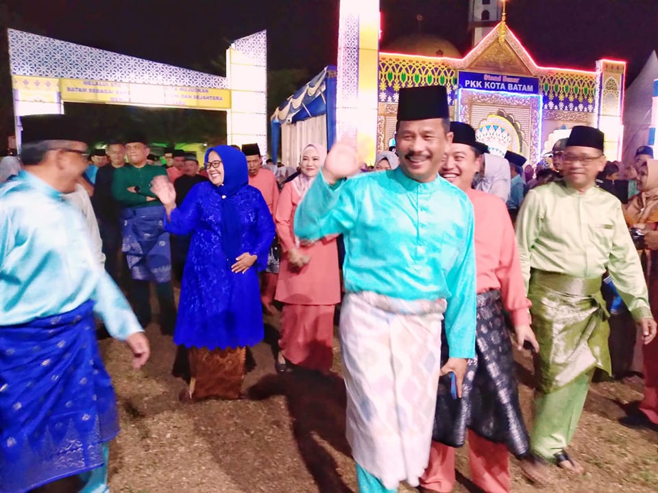 HMR dan Wakil Gubernur Kepulauan Riau Hj Marlin Agustina, yang juga merupakan Ketua Tim Penggerak Pemberdayaan Kesejahteraan Keluarga (TP- PKK) Kota Batam, tiba pukul 20.15 WIB di Lapangan Usman Harun, tempat acara dilaksanakan.
