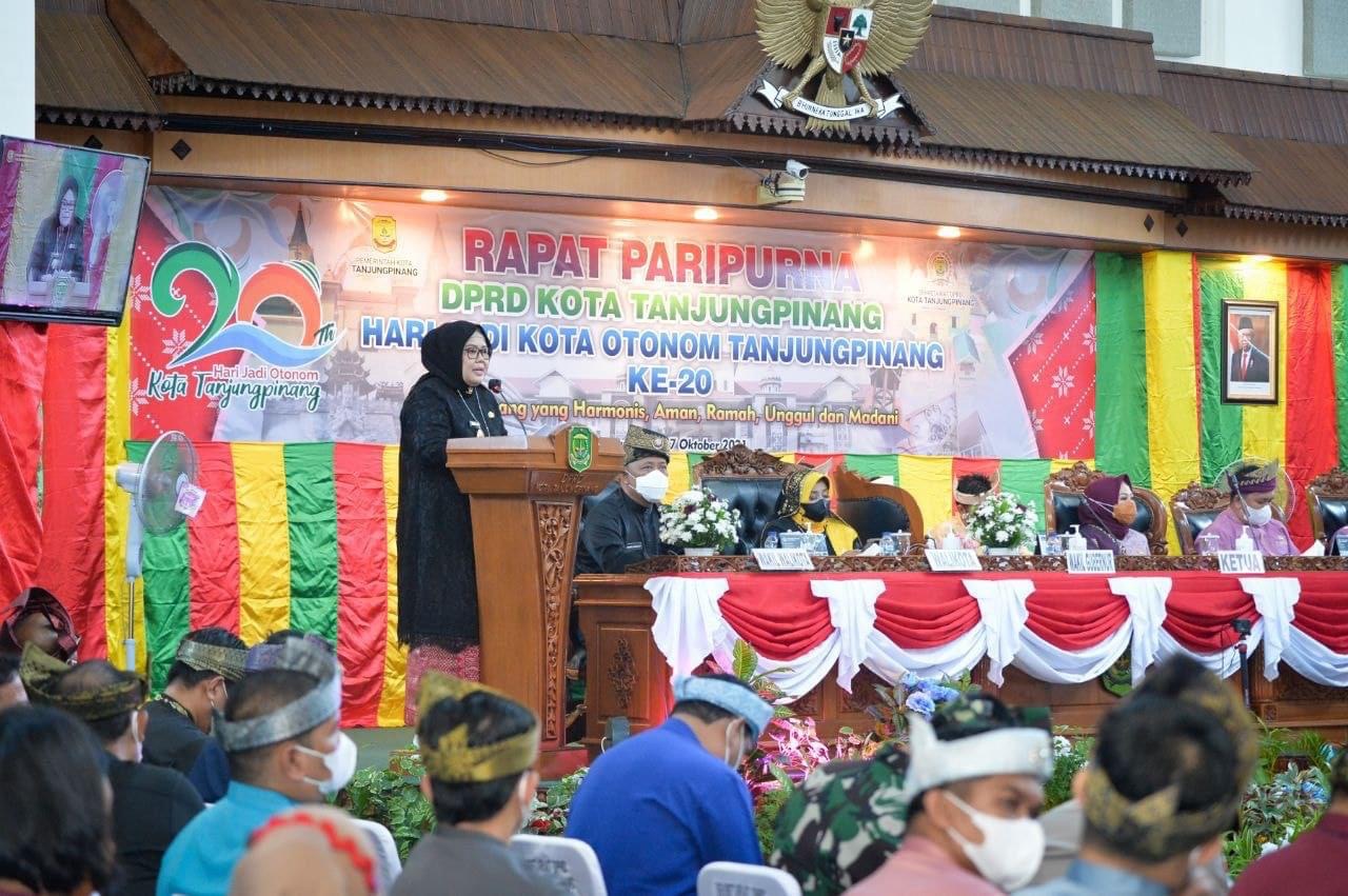 “Banyak kemajuan kota ini sejak ditetapkan sebagai kota otonom 20 tahun lalu,” ujar Wakil Gubernur Kepulauan Riau Hj Marlin Agustina, saat Rapat Paripurna DPRD Kota Tanjungpinang, sempena HUT Ke-20 Kota Otonom Tanjungpinang, Tahun 2021 di Gedung DPRD Kota Tanjungpinang, Senggarang, Ahad (17/10/2021).