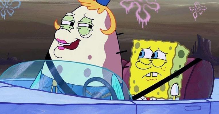 Foto ilustrasi: SpongeBob Squarepants sedang mengemudi didampingi Mrs PoppyPuff.