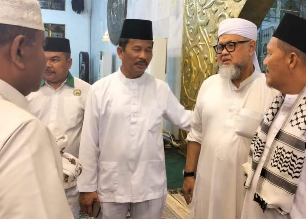 DAMAI: Calon Gubernur/Wakil Gubernur Kepri nomor urut 2, H Muhammad Rudi & H Aunur Rafiq, berbincang dengan Tokoh Kepri Huzrin Hood, usai salat Subuh berjemaah di Tanjungpinang, belum lama ini. HMR selalu mengimbau pendukungnya agar berlaku damai jelang pilkada ini.