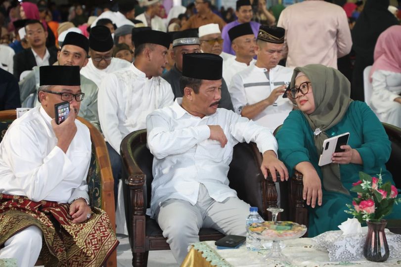 Wali Kota Batam/Kepala Badan Pengusahaan Batam H Muhammad Rudi (HMR), berbincang dengan Wakil Gubernur Kepulauan Riau Hj Marlin Agustina, didampingi Sekretaris Daerah Kota Batam H Jefridin, di sela menghadiri malam 1 Muharam 1445 H Kota Batam, Selasa (18/07/2023) lalu
