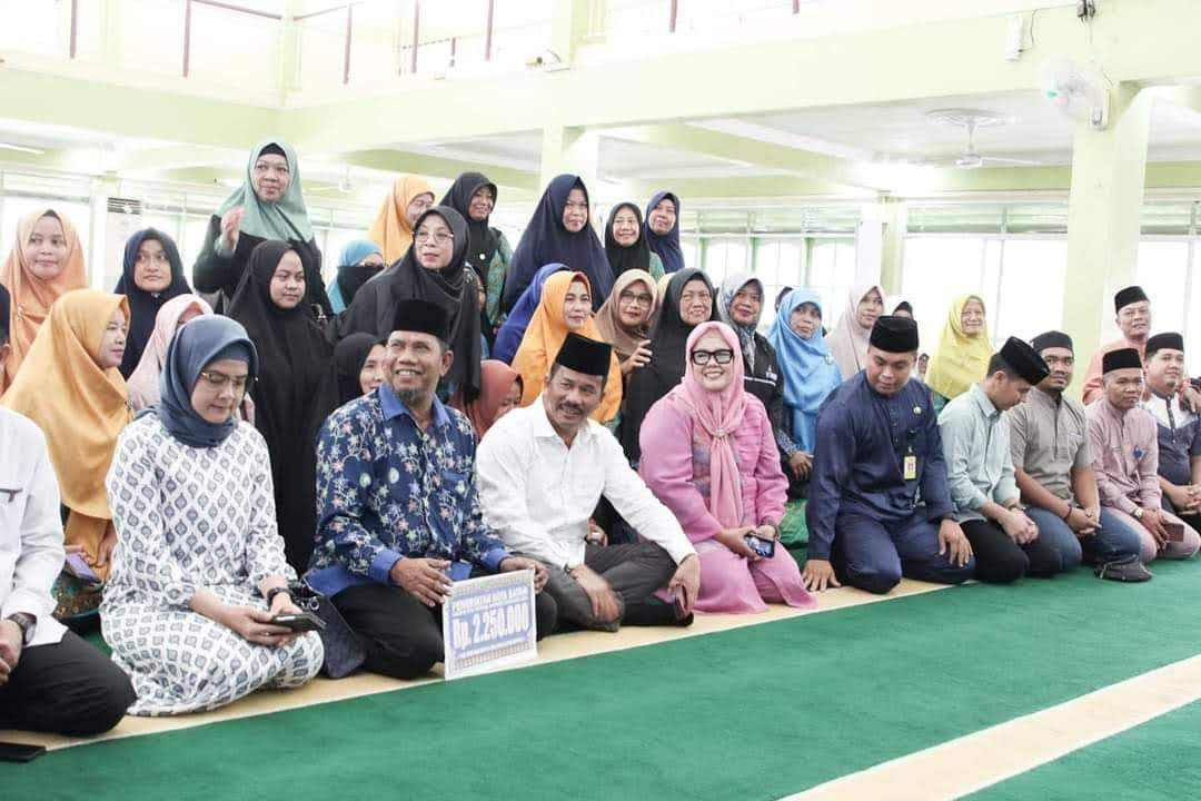 DUDUK SAMA RENDAH: Wali Kota Batam H Muhammad Rudi (HMR), dan Wakil Gubernur Kepulauan Riau Hj Marlin Agustina, foto bersama usai menyerahkan secara simbolis insentif kepada tokoh agama, belum lama ini. Orang yang baik, khususnya pemimpin, akan selalu peduli kepada sesama.