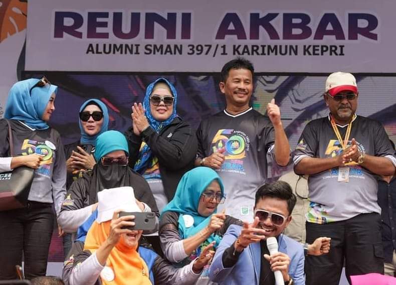 CITA CINTA: Wakil Gubernur Kepulauan Riau Hj Marlin Agustina, Wali Kota Batam/Kepala Badan Pengusahaan Batam H Muhammad Rudi (HMR), dan Bupati Karimun H Aunur Rafiq, foto bersama dalam sebuah reuni di Karimun belum lama ini. Hati yang penuh cinta bagai taman penuh bunga. Indah dan bahagia. Seperti foto ini.