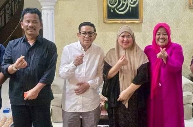SILATURAHMI IDULFITRI 1445 H: Foto kenangan, saat Wali Kota Batam/Kepala Badan Pengusahaan Batam H Muhammad Rudi (HMR), bersama istri, Wakil Gubernur Kepulauan Riau Hj Marlin Agustina, mengunjungi kediaman mantan Wali Kota Batam dan tokoh Melayu Kota Batam Dato’ H Nyat Kadir dan istri, Hj Hasyimah, di Tiban I, Sekupang, Kamis 11 April 2024 silam. Dato’ Nyat Kadir wafat pada Minggu 1 September 2024, di usia 75 tahun. Namun kebaikannya akan terus memandu kita.