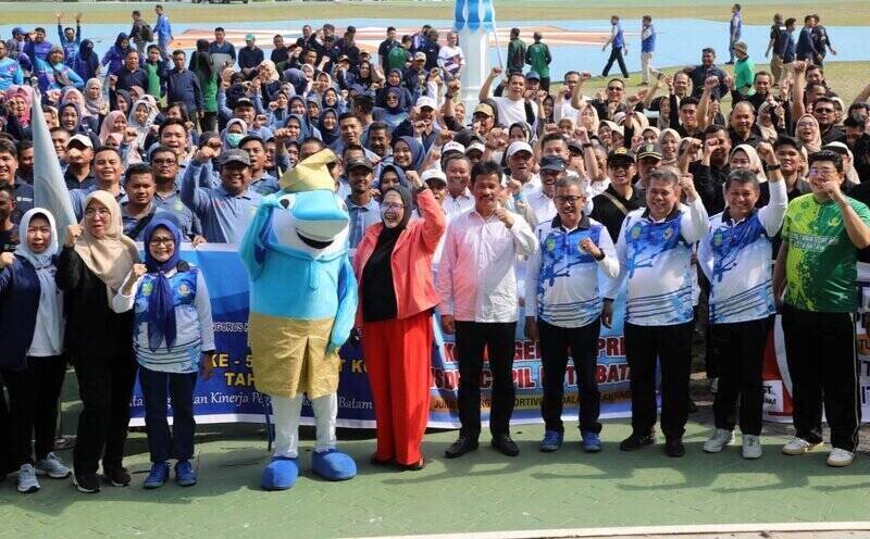 "KOLABORAKSI": Wali Kota Batam H Muhammad Rudi (HMR), dan Wakil Gubernur Kepulauan Riau Hj Marlin Agustina, foto bersama saat HUT Korpri Tingkat Kota Batam, di Dataran Engkuputri, Batamcenter. Hanya dengan kolaborasi kita akan sejahtera.