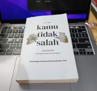 Ini salah satu kalimat dari ratusan “mutiara” lainnya yang ditulis di buku “Kamu Tidak Salah” (Pertolongan Pertama pada Kesehatan Jiwa), yang ditulis berdasarkan pengalaman si penulis, Jung Hyeshin, yang juga psikiater di Korea Selatan, saat berhadapan dengan kliennya.