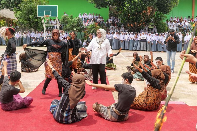 Wagub Marlin ikut atraksi teatrikal para pelajar SMA Negeri yang menyambut kunjungannya.