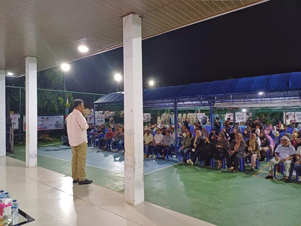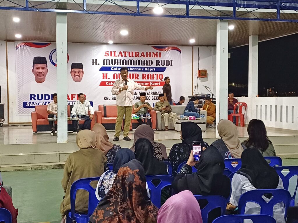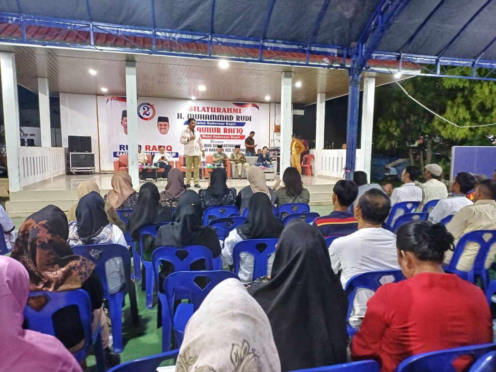 SEIHARAPAN, KataBatam- Calon Gubernur Kepulauan Riau (Kepri) nomor urut 2, H Muhammad Rudi (HMR), bersilaturahmi sekaligus melakukan kampaye dialogis dengan masyarakat Kelurahan Seiharapan, Sekupang, Kota Batam, Kamis (3/10/2024).
