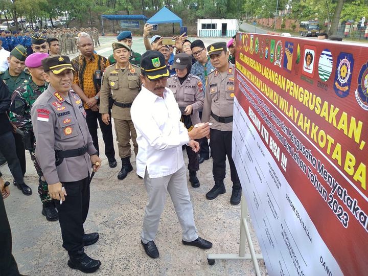 BATAMKOTA, KataBatam- Wali Kota Batam/Kepala Badan Pengusahaan Batam H Muhammad Rudi (HMR) memimpin Apel Deklarasi Pencegahan Kebakaran Hutan dan Lahan (Karhutla) di lapangan Markas Polresta Barelang, Batam, Kamis (4/5/2023) pagi.