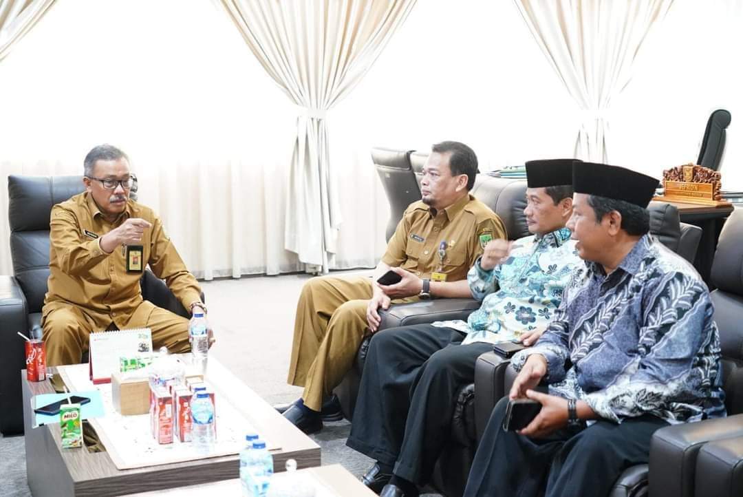 ANAK SOLEH: Sekda Kota Batam H Jefridin, saat menerima kunjungan silahturahmi Ketua BMGQ Kota Batam KH Deden Sirozuddin, di ruang kerja Sekda, gedung Pemko Batam, Batamcenter, Senin (7/10/2024).