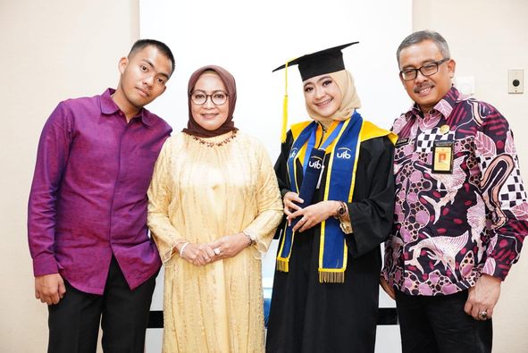 BATAMCENTRE, KataBatam- Sekretaris Daerah Kota Batam H Jefridin, tampak bahagia. Putrinya, Melgie Riyan Utami SPn MM, baru saja lulus dari studi S2 program Magister Manajemen di Universitas Internasional Batam dengan meraih predikat cum laude.