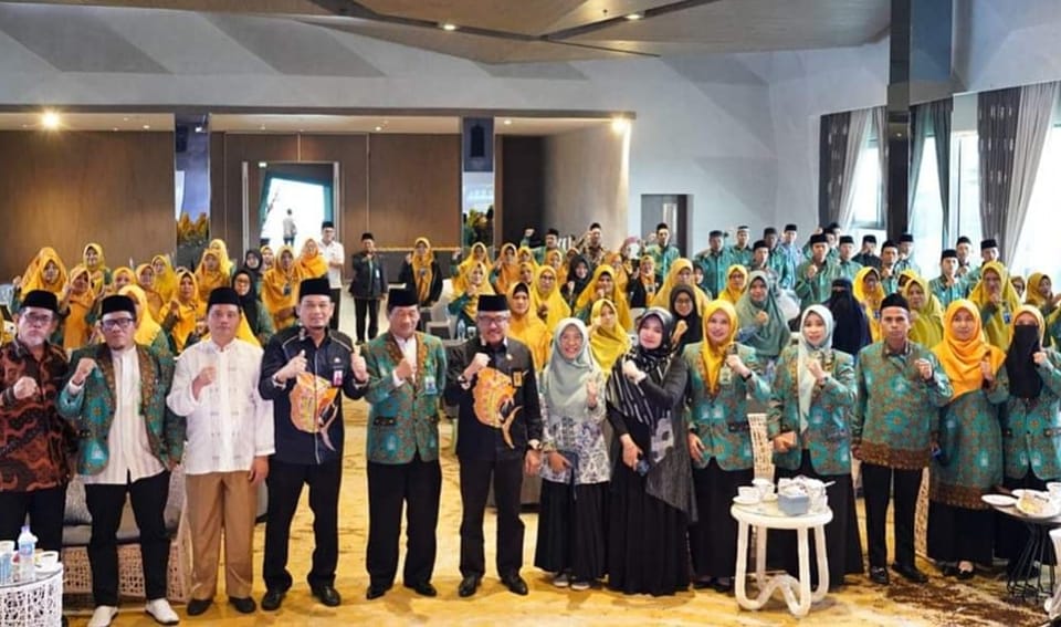 PAHAMI ALQURAN: Sekda Jefridin saat mewakili Wali Kota Batam H Muhammad Rudi (HMR), foto bersama usai membuka Pelatihan Guru TPQ, di Hotel Ibis Style, Nagoya, Lubukbaja, Rabu (14/6/2023).ย