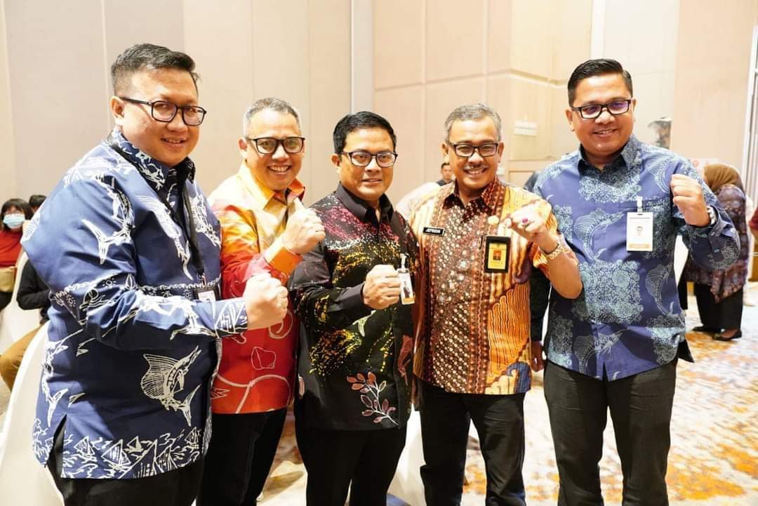 BERSIH: Sekretaris Daerah Kota Batam H Jefridin, foto bersama di sela peluncuran Kartu Kendali/Fuel Card 5.0 di Unique 1 Ballroom, Harris Hotel, Batamcentre, Kamis (14/3/2024).