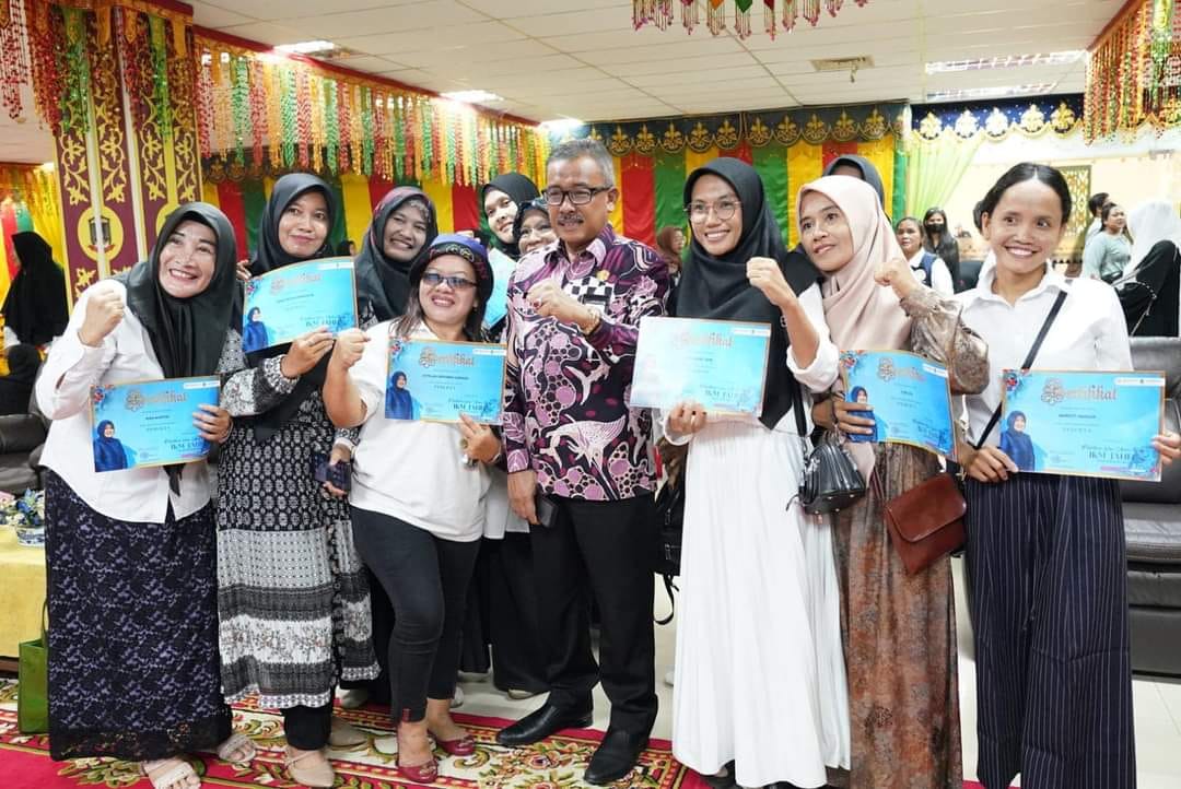 JADI BINTANG: Sekretaris Daerah Kota Batam H Jefridin, diserbu peserta untuk diajak foto bersama usai menutup Pelatihan Wirausaha Baru IKM Jahit, di Gedung Lembaga Adat Melayu (LAM) Kota Batam, Batamcenter, Kamis (23/11/2023).