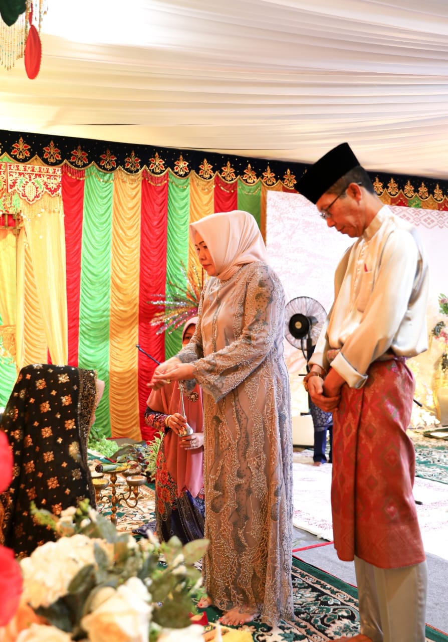 Sementara itu selama prosesi berlangsung, tampak Amsakar dan istri, Hj Erlita Sari Amsakar, menyaksikan dengan ekspresi bahagia. Meski sesekali keharuan memancar dari raut wajah keduanya.