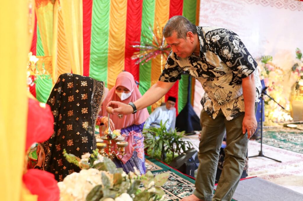 “Kami berdiri di sini mewakili sahibul bait (tuan rumah), memohon doa agar mempelai berbahagia, sakinah mawadah warahmah,” jelasnya.
