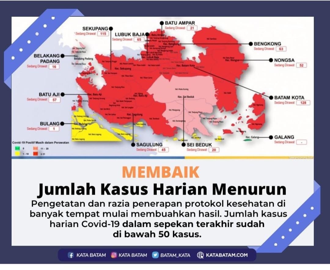 Data terbaru, per 12 Mei 2021, sejumlah kecamatan seperti Belakangpadang dan Seibeduk yang beberapa waktu lalu berada di zona merah, kini mulai berubah jadi oranye.