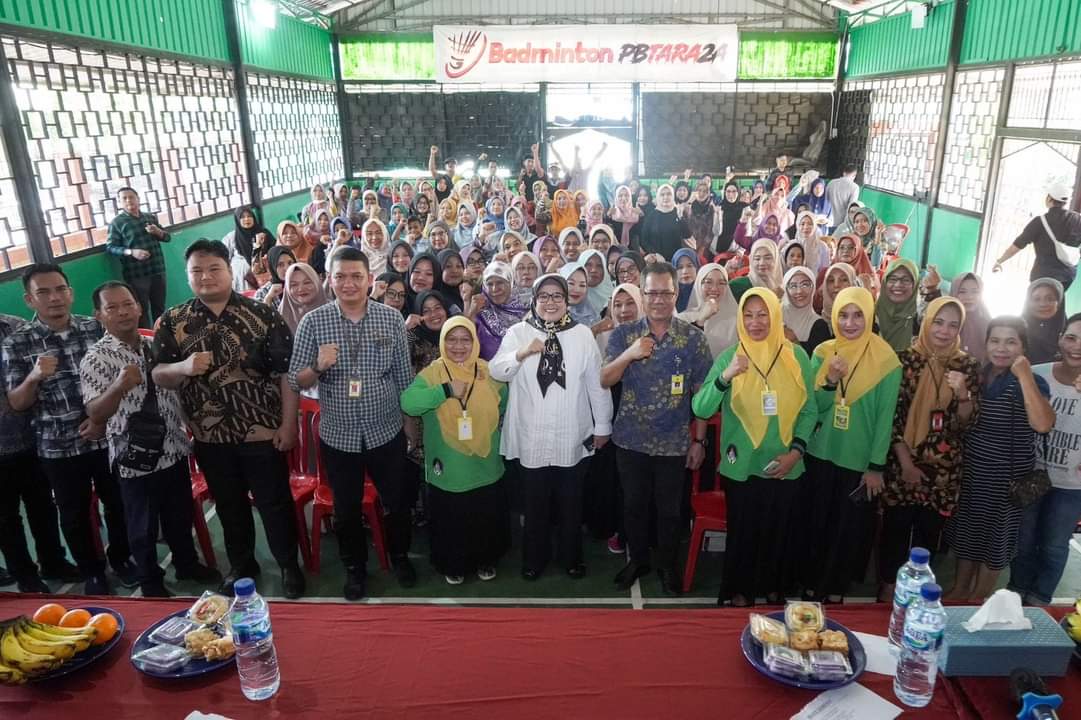 BENGKONG, KataBatam- Ketua Tim Penggerak Pemberdayaan Kesejahteraan Keluarga (TP-PKK) Kota Batam Hj Marlin Agustina, membuka Sosialisasi dan Edukasi Pilah Sampah dari Rumah, di Kelurahan Belian, Kecamatan Batamkota, Kamis (6/6/2024).