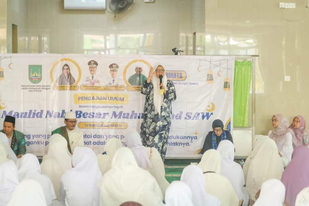 Di Seibeduk, Ketua Tim Penggerak Pemberdayaan Kesejahteraan Keluarga (TP- PKK) Kota Batam ini, menghadiri pengajian umum sempena peringatan Maulid Nabi Muhammad SAW.