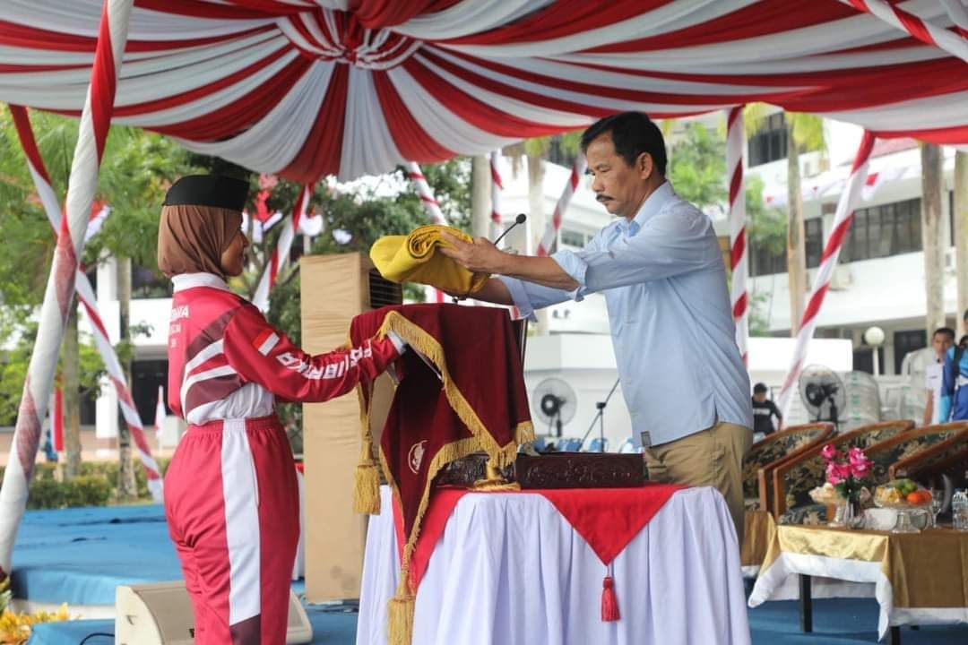 ENGKU PUTRI, KataBatam- Hujan deras tak hentikan langkah demi berkibarnya sang merah putih. Begitulah semangat heroisme yang ditunjukkan tim pelaksana upacara bendera HUT ke-79 RI di Kota Batam.