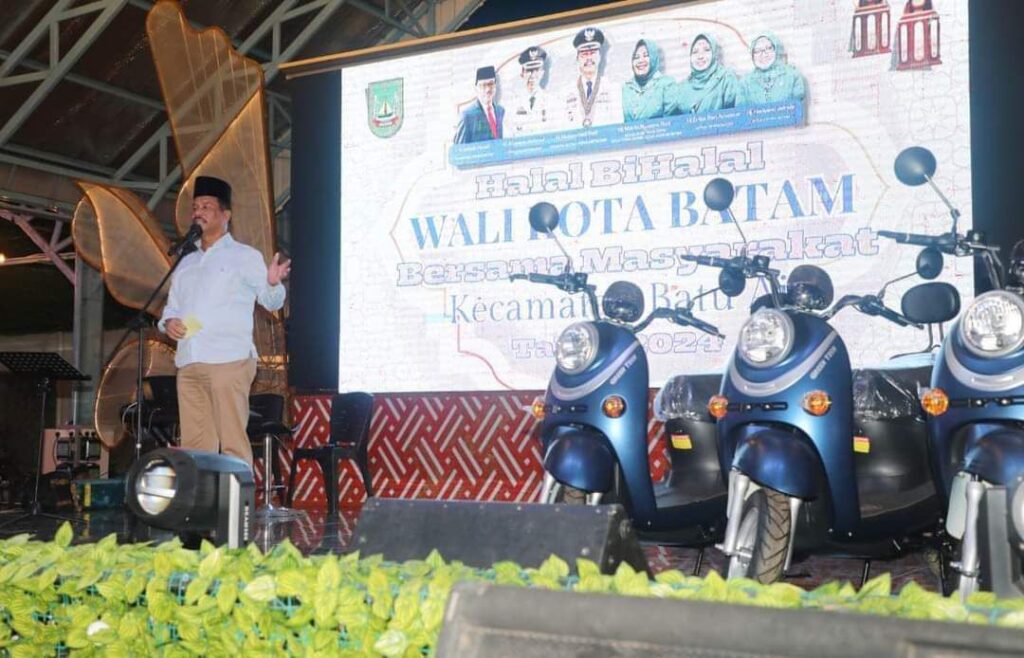 KIBING, KataBatam- Wali Kota Batam/Kepala Badan Pengusahaan Batam H Muhammad Rudi (HMR), bersama Wakil Gubernur Kepulauan Riau Hj Marlin Agustina, menghadiri halalbihalal Kecamatan Batuaji, di Pakuba Buana Central Park, Kelurahan Kibing, Rabu (8/5/2024) malam.